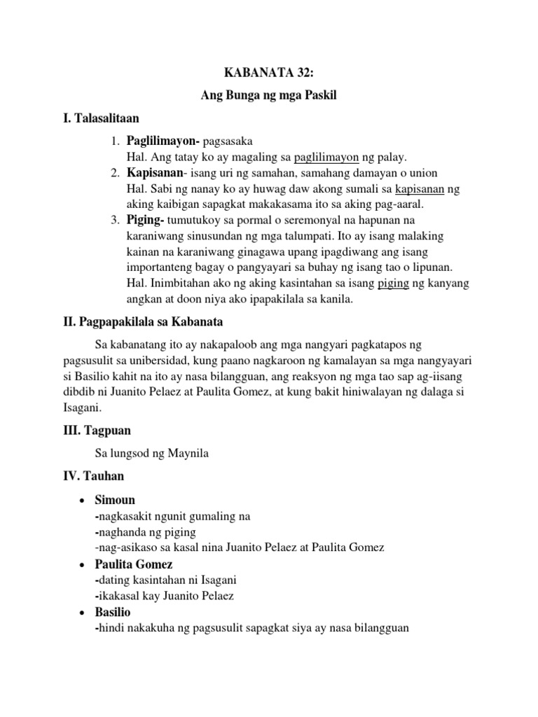 Buod ng kabanata32 ang bunga ng mga paskin. Kumpleto ang bawat kabanata ng El Filibusterismo. Read KABANATA 32 ANG BUNGA NG MGA PASKIL from the story El Filibusterismo Buod by BlackImmortals BlackImmortal with 17960 reads. Ang literal na kahulugan ng paskin ay kartel.